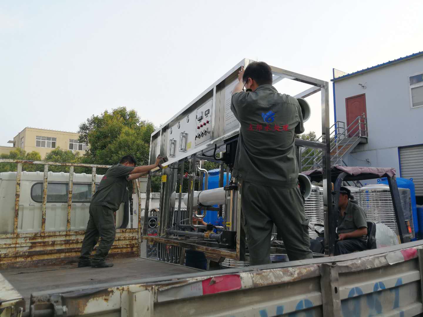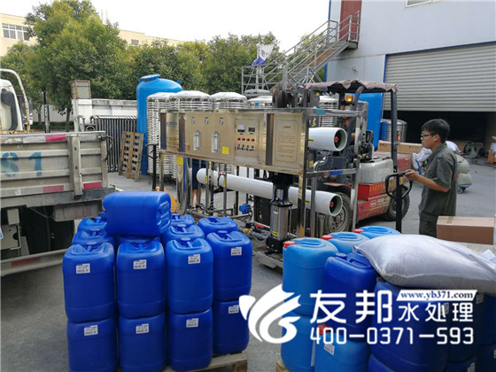 鄭州友邦型號(hào)為YB-CJS-005的反滲透純凈水設(shè)備正在裝車發(fā)往山東濟(jì)南。