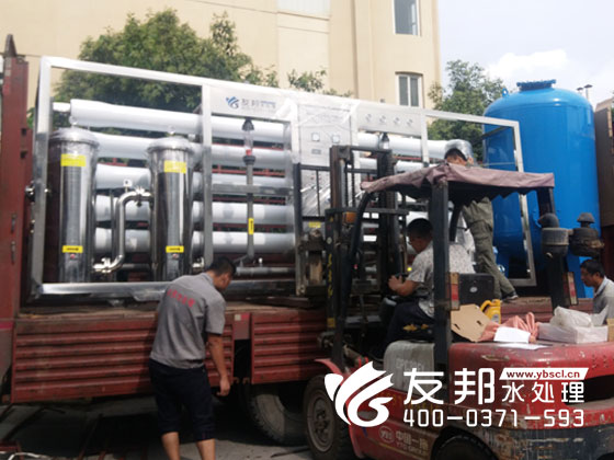 2018年8月9日在鄭州友邦師傅們的共同協作下20噸蘇打水反滲透純凈水設備已經順利裝車發貨,這是發往焦作地區用作蘇打水生產線的擴大生產。