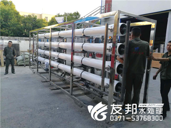河南友邦型號為YB-CJS-005的反滲透純凈水設備正在裝車發往山東濟南。 5噸每小時小型反滲透純凈水設備就是每小時大出水量是5噸,由于該設備的出水量比較小,一般應用在