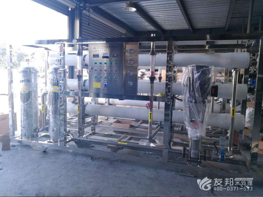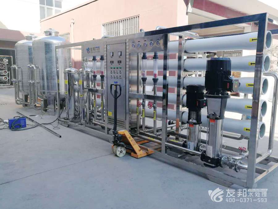 地下水或城市自來水——原水增壓泵——石英砂過濾器——活性炭過濾器——加藥裝置(阻垢劑)——精密過濾器(10微米)——精密過濾器(5微米)—— 一級(jí)高壓泵——一級(jí)反滲透過濾(可達(dá)到脫鹽率98%)——加藥裝置(PH調(diào)節(jié)) ——二級(jí)高壓泵——二級(jí)反滲透過濾(可達(dá)到脫鹽率99.5%以上)——純水箱