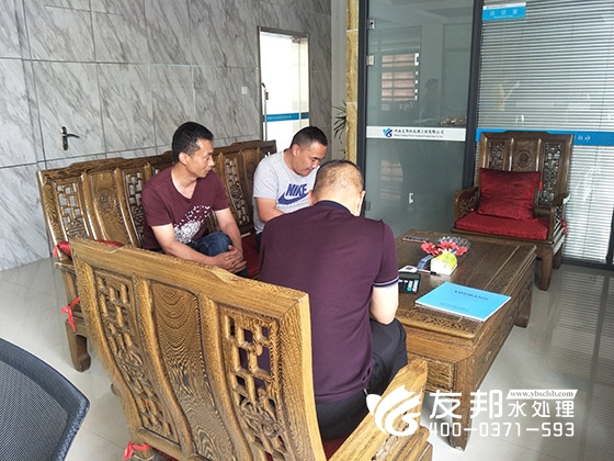 這兩位客戶已經(jīng)不是 一次來到鄭州友邦了,已經(jīng)是鄭州友邦的老客戶之前在友邦訂過設(shè)備。剛剛客戶在樓下已經(jīng)看過友邦的純凈水設(shè)備,對(duì)設(shè)備的外型,性能,材質(zhì)及配件都特別滿意。